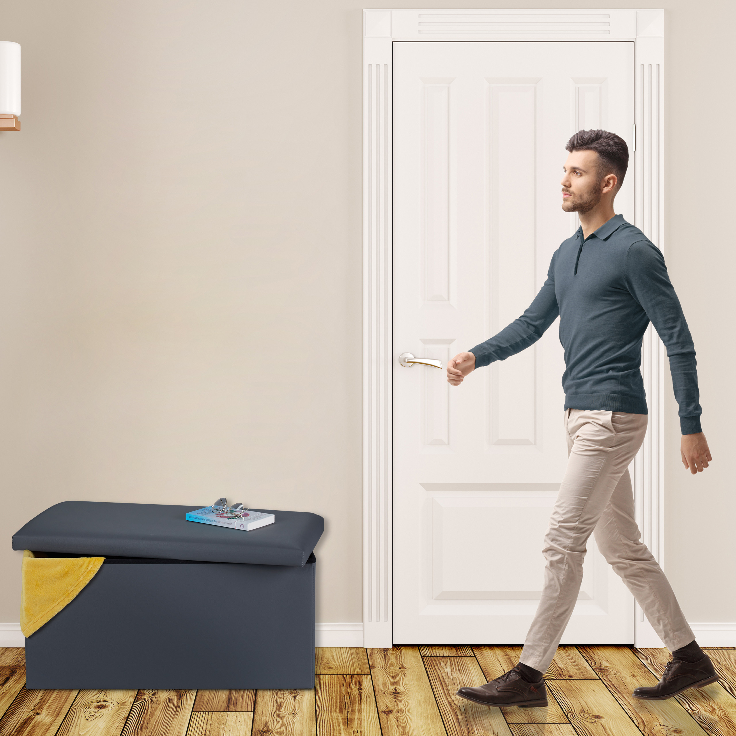 - Erdvės taupymas: Naudokite jį kaip suoliuko skrynią miegamajame, kad tvarkingai laikytumėte patalynę ir sutaupytumėte vietos.