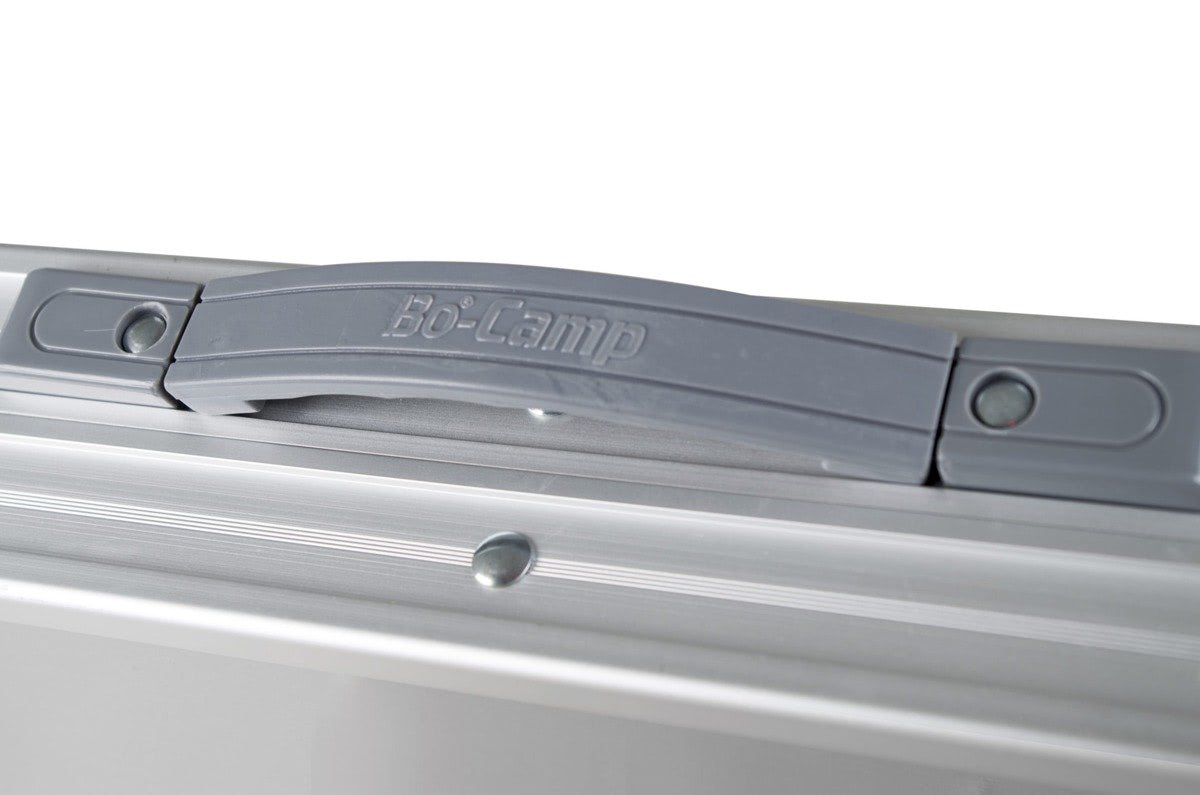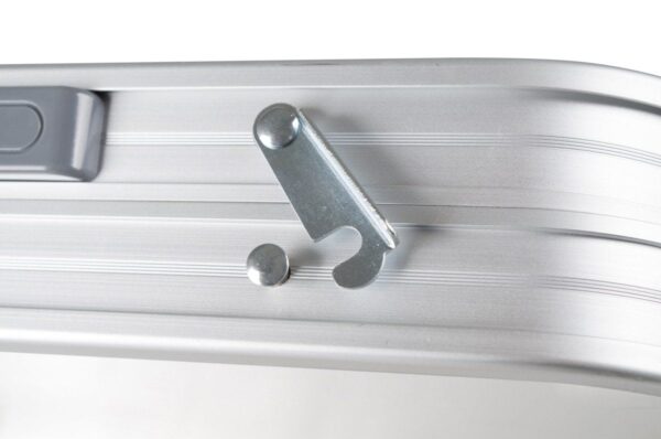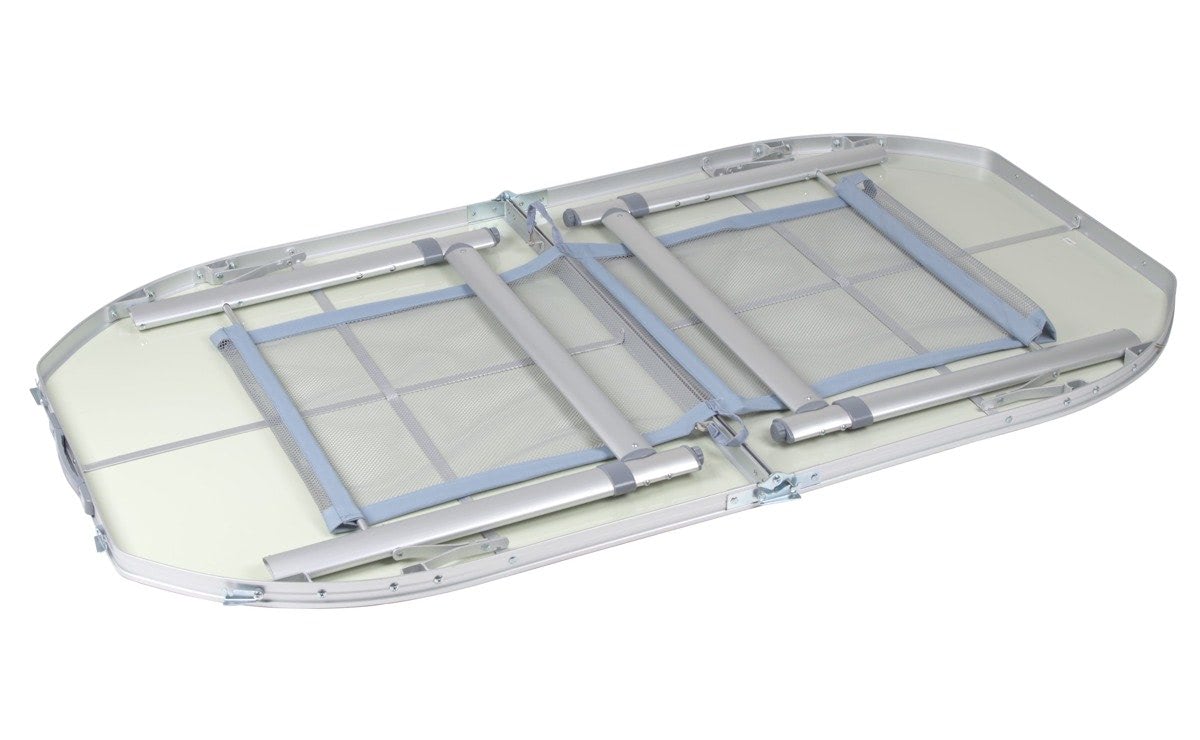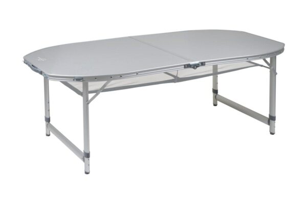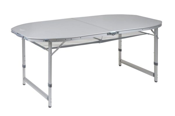Didelis, stabilus, reguliuojamo aukščio stovyklavimo stalas su vandeniui ir aukštai temperatūrai atspariu stalviršiu. Stalas turi nuimamas kojeles ir sulankstomą viršų. Dėl to jį galima sulankstyti kaip lagaminą. Pagaminta iš lengvo aliuminio. Kojos reguliuojamos 3 lygiais (55/65 / 70 cm) su kojelėmis / varžtais tiksliam reguliavimui. Po viršumi yra tinklelis, kuris atlieka papildomos lentynos funkciją.Sulenkti matmenys: (P x P x A) 80x75x7cm.