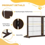 PawHut barjeras gali saugiai ir efektyviai apriboti jūsų augintinio mankštos sritį. Trys medžio masyvo rėmo grotelės, sujungtos vyriais, gali būti pasuktos skirtingais kampais. Jie tinkami siauruose koridoriuose, laiptinėse ar erdviose patalpose. Kai nenaudojami, juos galima lengvai sulankstyti ir užima mažai vietos.