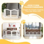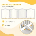 Užtikrinkite saugumą šunų užtvaru PawHut. Idealiai tinka laiptams, įėjimams į namus arba kaip kambario riba – jūsų šuo visada būna savo saugomoje zonoje. Stabilios šunų apsaugos kojos garantuoja tvirtą laikymą, o lanksčios jungtys leidžia ją pritaikyti prie bet kokios durų angos. Apsaugokite savo namus ir keturkojį draugą naudodami šį universalų ir tvirtą barjerą. Pasitikėkite „PawHut“ savo augintinio saugumu!