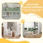Paprastas naudoti šunų barjeras PawHut harmoningai įsilieja į jūsų gyvenamąją aplinką ir tuo pačiu užtikrina aukščiausio lygio saugumą jūsų mylimam keturkojui. Nesvarbu, ar įėjimo zonoje, ar kaip kambario pertvara, stabilios kojelės ir lanksčios jungtys lengvai prisitaiko prie bet kokios durų angos. Tai reiškia, kad galite mėgautis savo sodu be rūpesčių, kol jūsų šuo bus saugus ir saugus namuose. Pasitikėkite „PawHut“ stilingais ir saugiais namais.