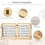 Ši PawHut medinė užtvara yra saugus ir efektyvus būdas laikyti savo augintinius vienoje vietoje, tuo pačiu suteikiant jūsų namams dekoratyvumo. Šis reguliuojamas šunų barjeras susideda iš šešių elementų, sujungtų tvirtais vyriais ir gali būti sulankstytas arba laisvai pastatomas. Plačios atraminės pėdos galuose užtikrina optimalią pusiausvyrą. Stilingas medinis užtvaras tinka bet kurioje jūsų namų vietoje.