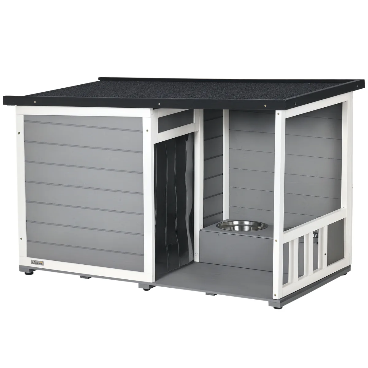 Šis „PawHut“ šunų namelis suteikia jūsų šunims patogią pastogę ir prieangį. Tai reiškia, kad jūsų šuo gali pasirinkti šešėlį ar saulėtą vietą. Atsparios oro sąlygoms medžiagos ir asfaltuotas stogas užtikrina, kad namelis ištvers lietų. Pakelti dubenys užtikrina, kad jūsų augintinis valgydamas ir gerdamas išlaikytų gerą laikyseną, o tai prisideda prie gero virškinimo. Šis šunų namelis iš PawHut yra tikras šunų rojus.