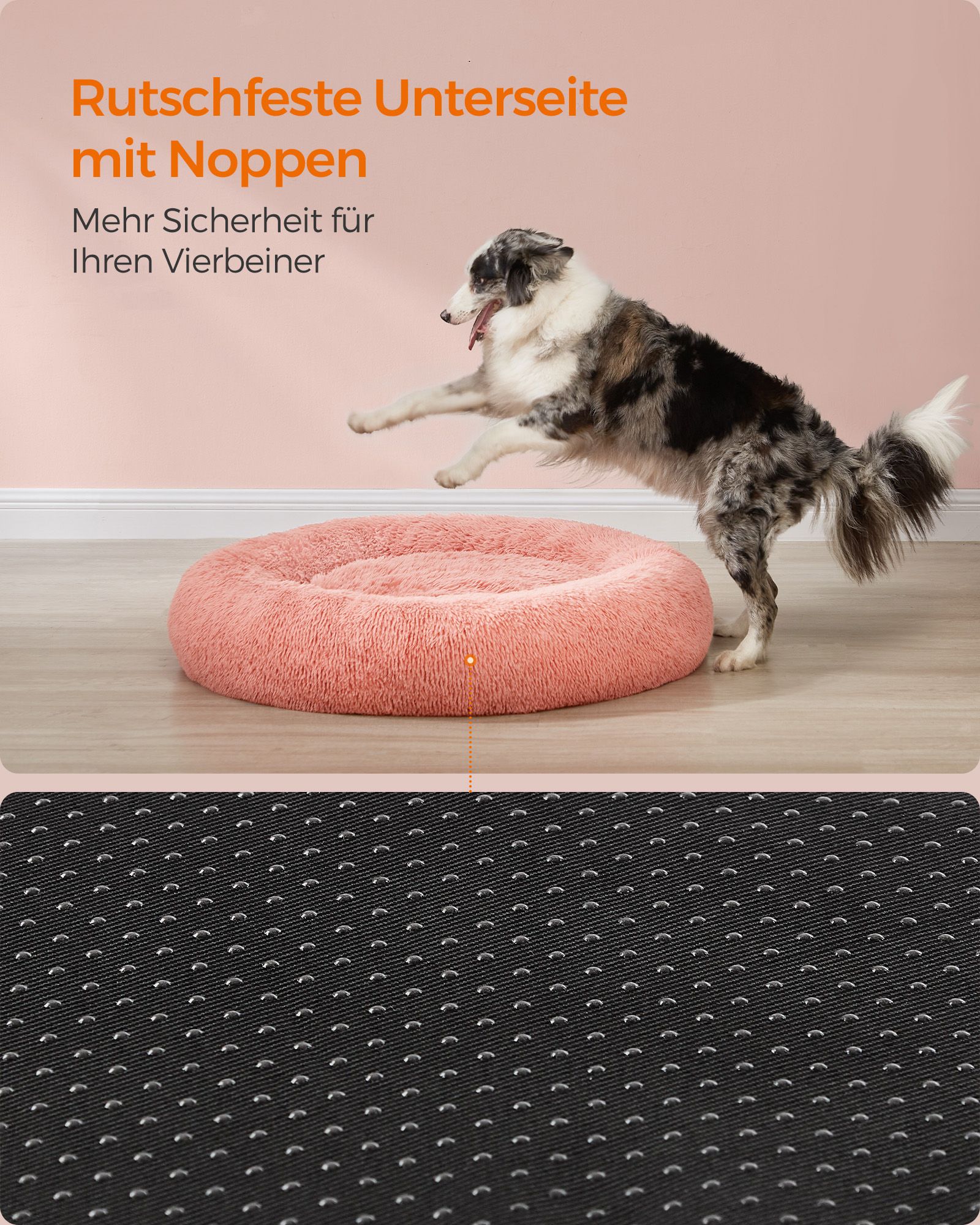 Šis guolis pagamintas iš aukštos kokybės pliušo, kuris yra ne tik minkštas, bet ir patvarus. PP užpildas užtikrina optimalų palaikymą ir komfortą, todėl jūsų šuo galės mėgautis ramiu poilsiu. Rožinė spalva suteikia guoliui elegancijos ir žaismingumo, puikiai derančio prie įvairių interjero stilių.