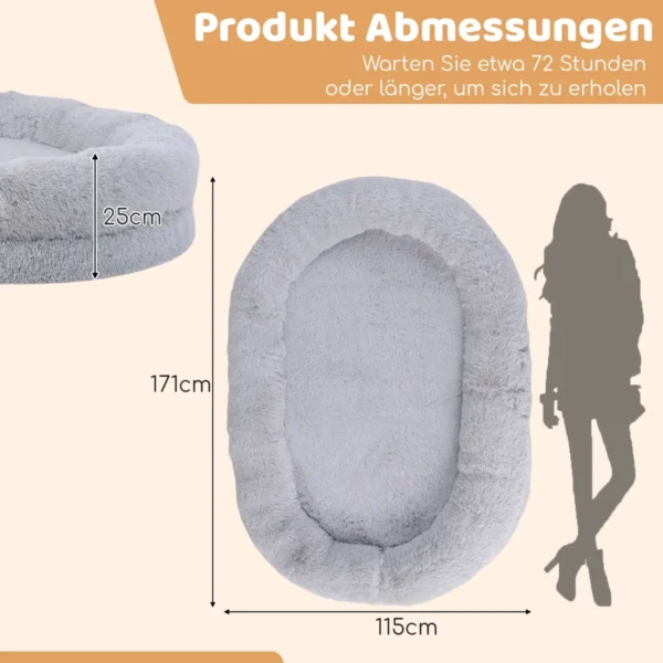 - Matmenys 171 x 115 x 25 cm (Ilgis x Plotis x Aukštis) suteikia pakankamai vietos šuniui ir žmogui.