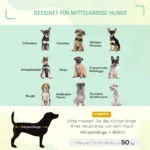 - ✔ Tinka vidutinio dydžio šunims iki 20 kg, o kūno ilgis mažesnis nei 50 cm