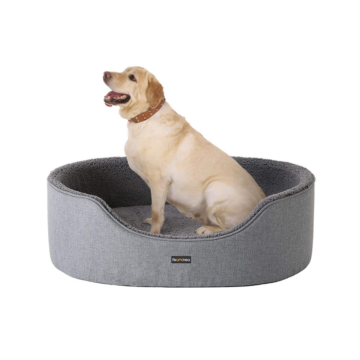 Tyliai, tyliai, į krepšį! Šis apvalus šunų guolis suteikia jūsų keturkojui draugui jaukią prieglobstį, kur jis gali pailsėti ir miegoti. 92 x 72 x 27 cm dydžio guolis ypač tinka vidutinio dydžio ir didelėms šunų veislėms, tokioms kaip auksaspalviai retriveriai, labradorai ar bobteilai.