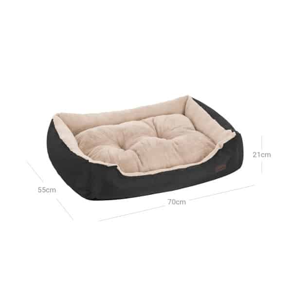 Kokybė ar stilius? Šioje augintinio lovoje tokio klausimo nekyla, nes joje dera abu komponentai. Tvirtas Oksfordo audinys išorėje atlaiko dar stipresnius smūgius letenomis, o elegantiško juodo audinio dėka šunų sofa taip pat yra stilingas baldas.