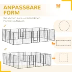 - ✔ Šuniukų bėgikas iš 16 sienų elementų, kuriuos galima įrengti stačiakampio, kvadrato, L formos ar kitų formų pavidalu