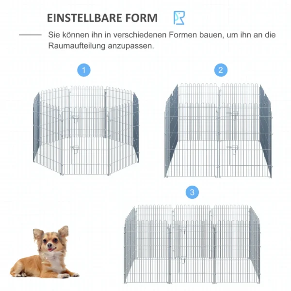 Šunų aptvaras iš 8 dalių PawHut 63x91cm., sidabrinės spalvos