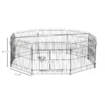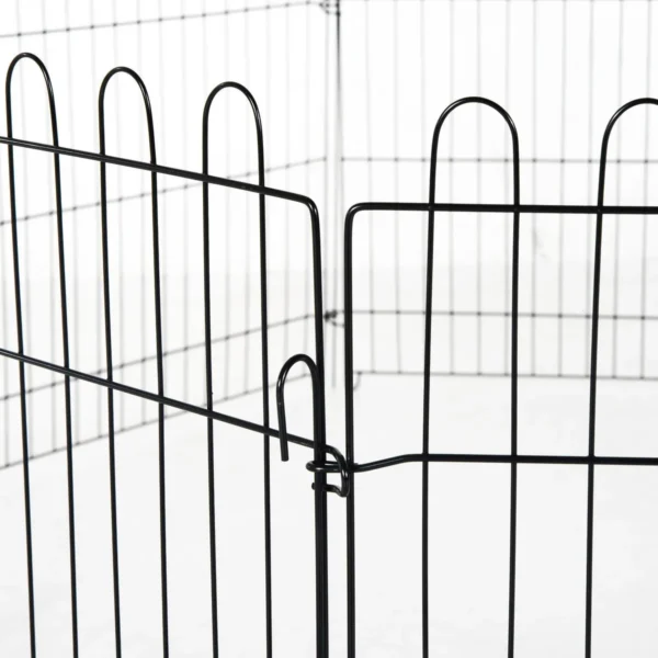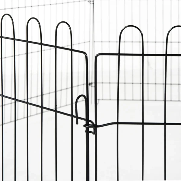 Šis praktiškas šuniukų bėgikas iš Pawhut siūlo jūsų augintiniams apsaugotą ir uždarą erdvę, kurioje galėsite šėlti, žaisti ir ilsėtis. Bėgimas tinkamas šunims, katėms, vištoms, kiaulytėms, triušiams ir kitiems smulkiems gyvūnams. Jame yra 8 metaliniai strypai, sujungti metaliniais užsegimais. Kiekvieną strypą galima pritvirtinti antžeminiais kuolais. Durys turi saugią užraktą, kad naminiai gyvūnai nepabėgtų.