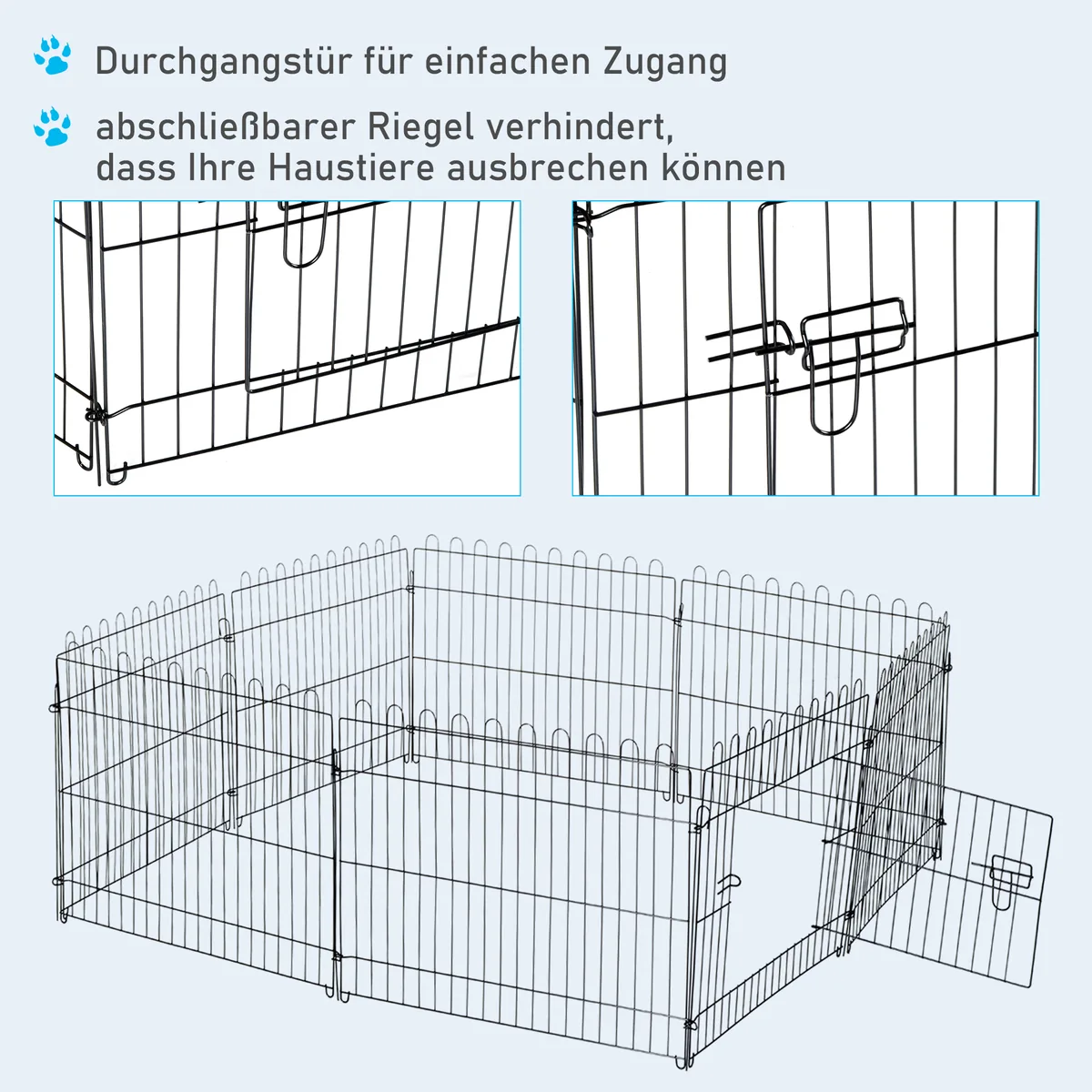 - Lengvas PRIEIGAS: viename bare yra durys, pro kurias jūs ir jūsų augintiniai gali lengvai pereiti. Durų užraktas neleidžia pabėgti naminiams gyvūnėliams.