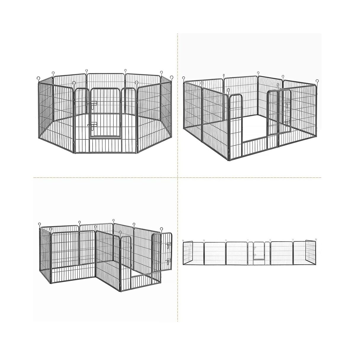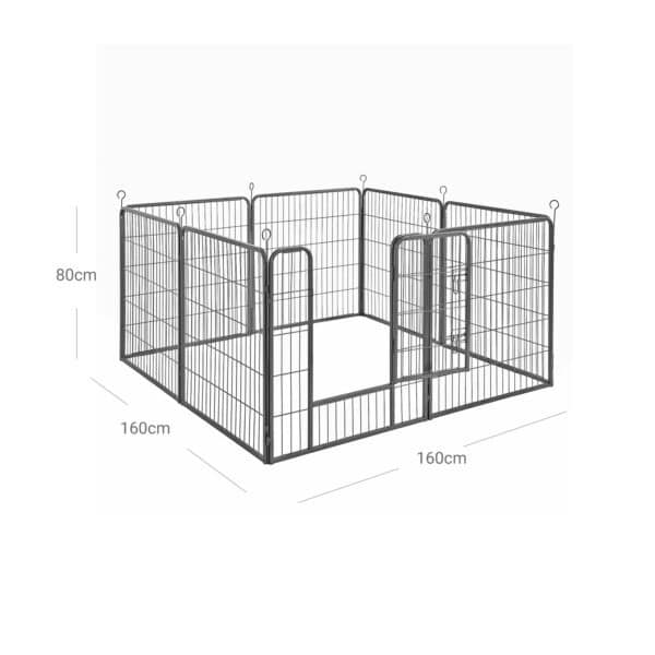 Metaliniai šio šunų narvo Feandrea bėgimo strypai turi užapvalintus kampus, todėl jūsų mažasis draugas negali susižaloti žaisdamas. Švaistikliai taip pat gali būti įsmeigti į žemę, jei naudojate narvą sode. Tai suteikia maniežui papildomo stabilumo.