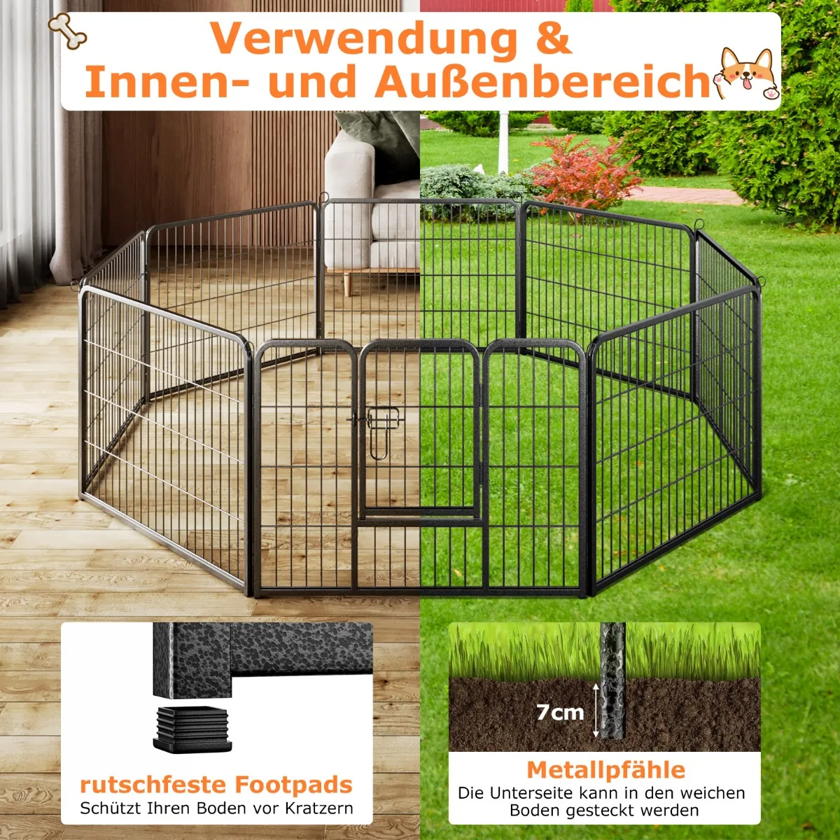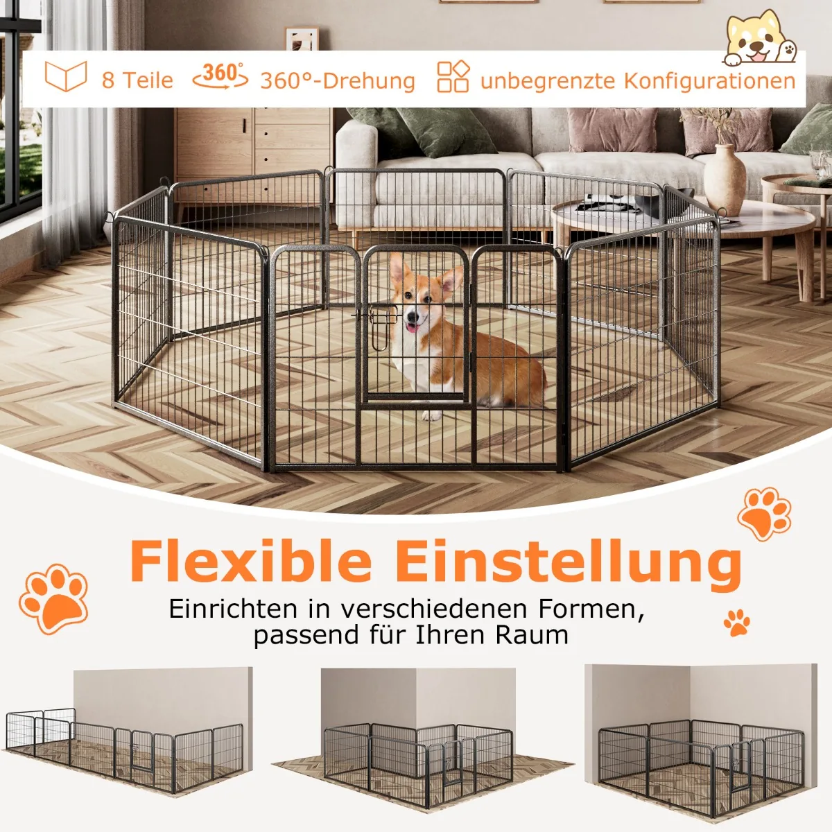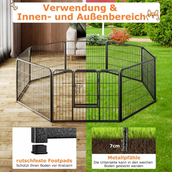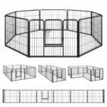Šunų pertvora 190x190x60cm juodos spalvos – patikima ir lanksti tvora, skirta sukurti saugią zoną jūsų augintiniams. Tinka naudoti įvairiose erdvėse tiek lauke, tiek viduje, užtikrinant patogumą ir apsaugą šunims bei kitiems naminiams gyvūnams.