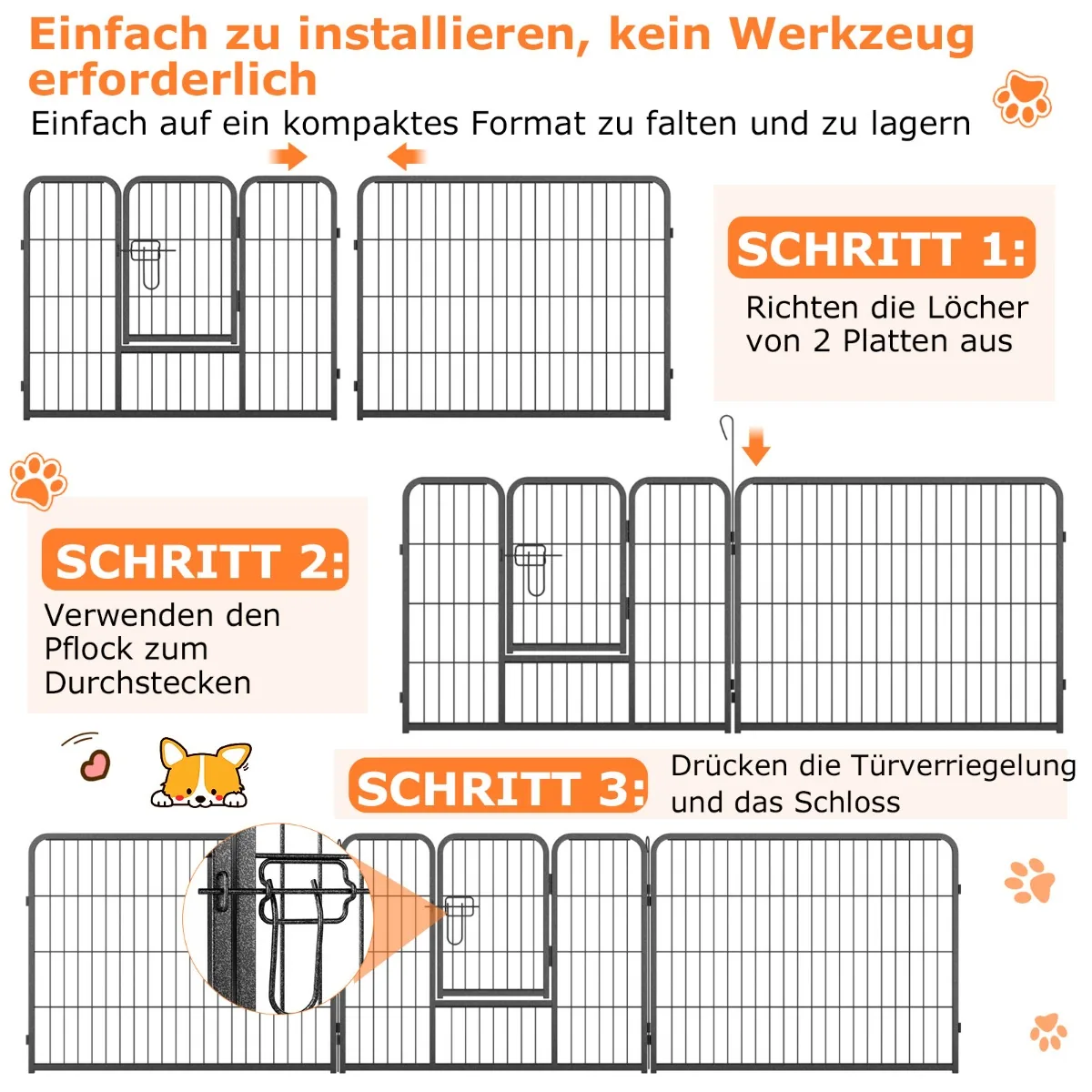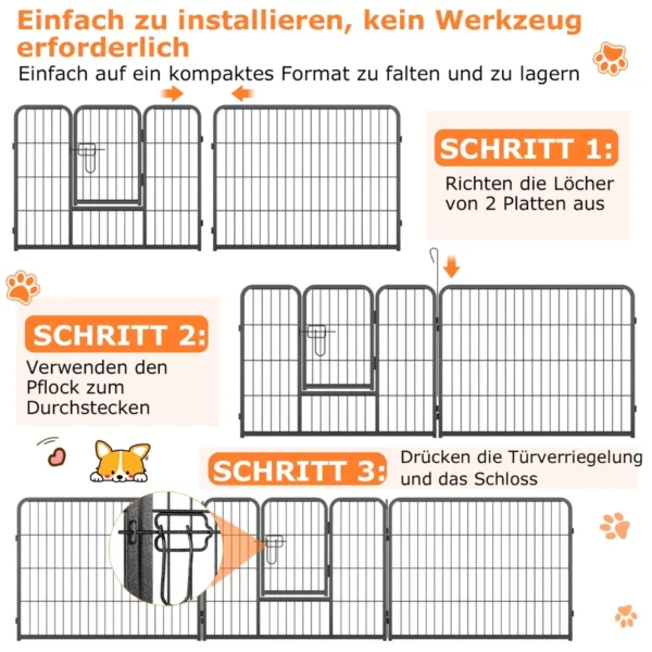 - Galima reguliuoti tvoros aukštį (60, 80 arba 100 cm), pritaikant pagal augintinio dydį.