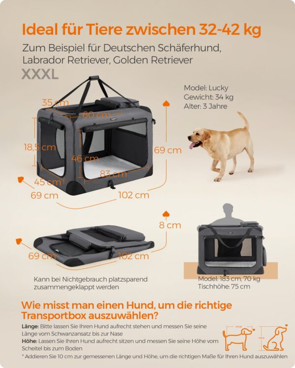 - Dydis: XXXL (102 x 69 x 69 cm)
