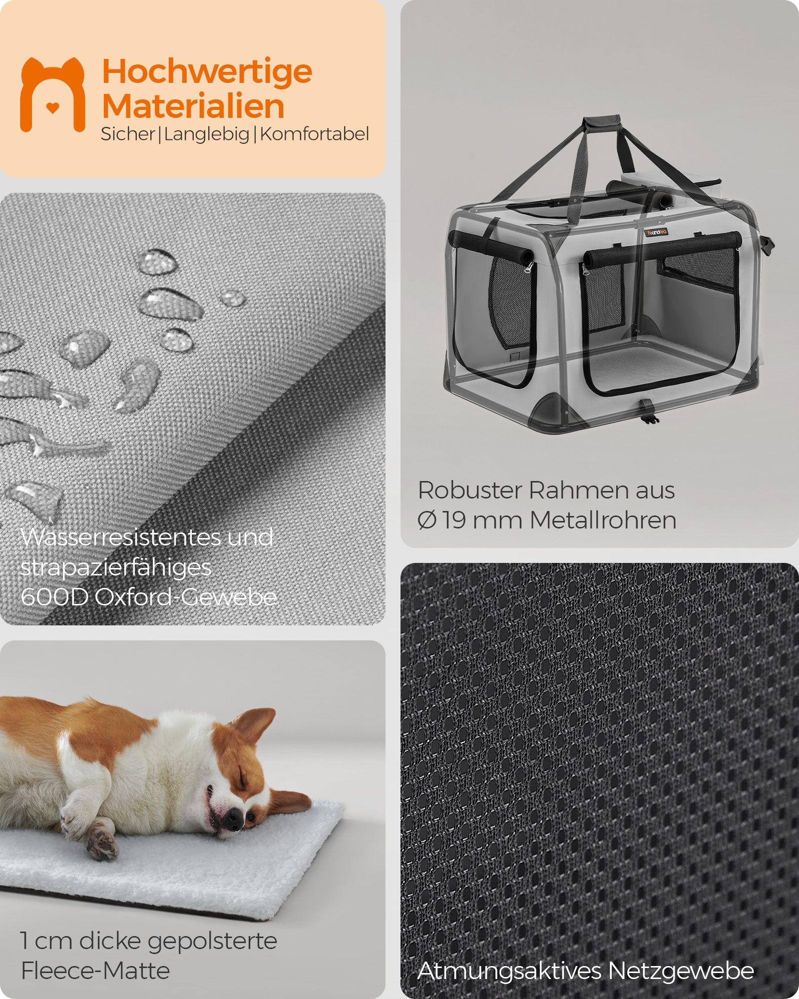 - Medžiaga: Tvirtas metalinis rėmas, 600D Oxford audinys su PVC danga ir minkšta vilna, užtikrinanti patogumą jūsų augintiniui.