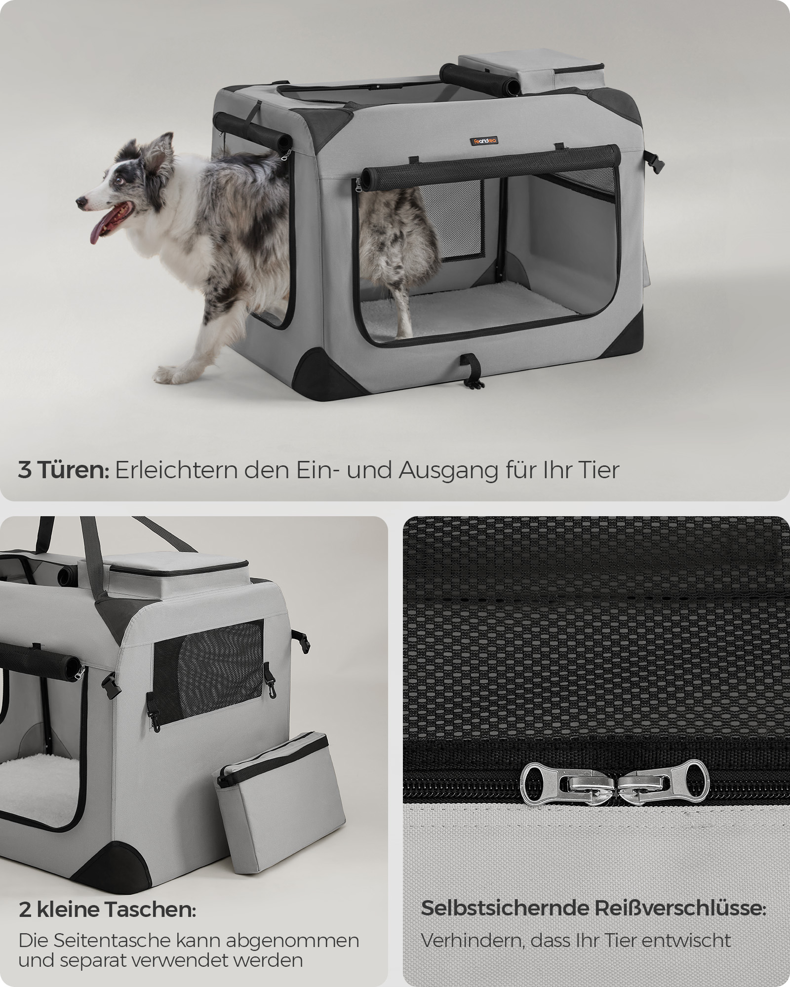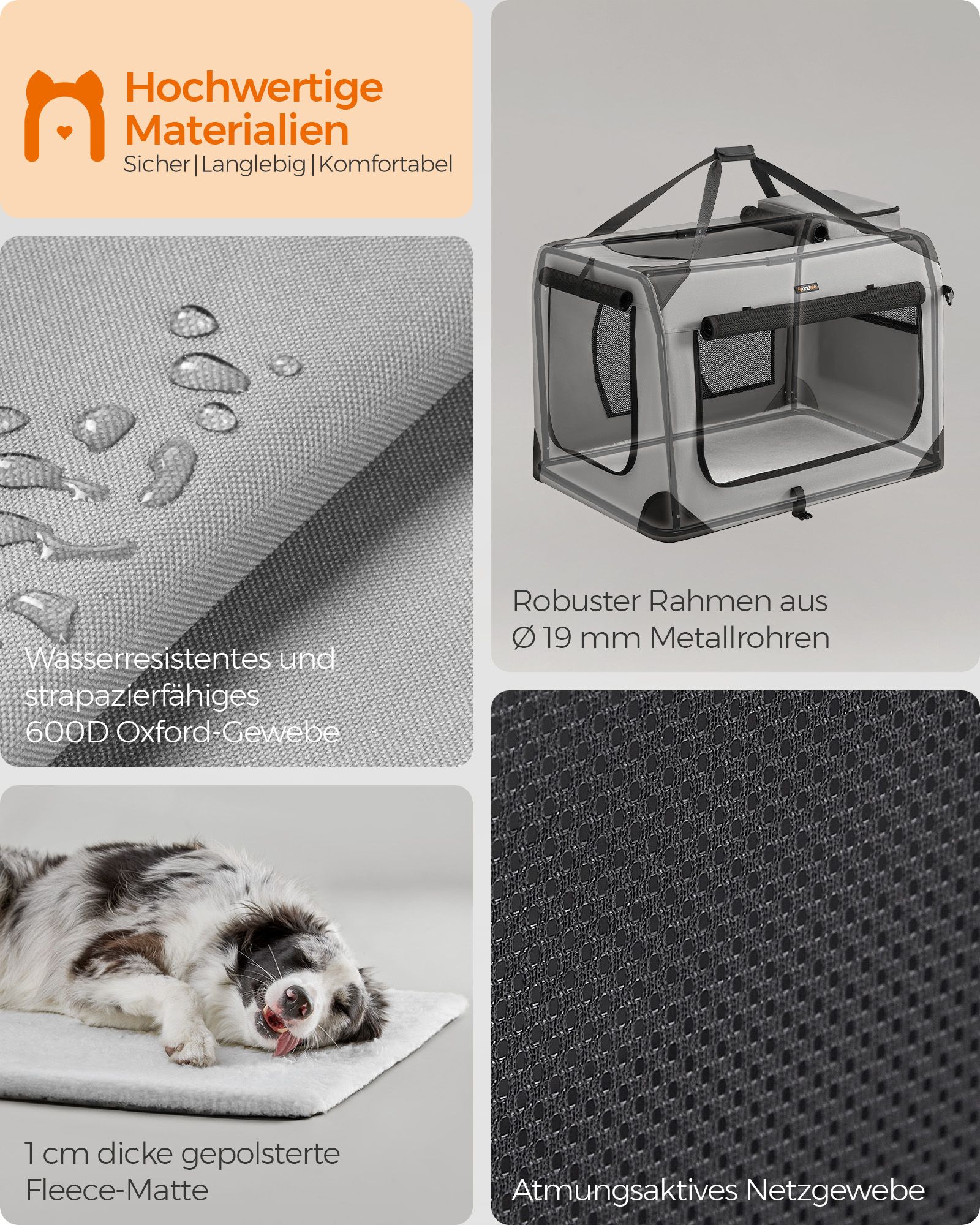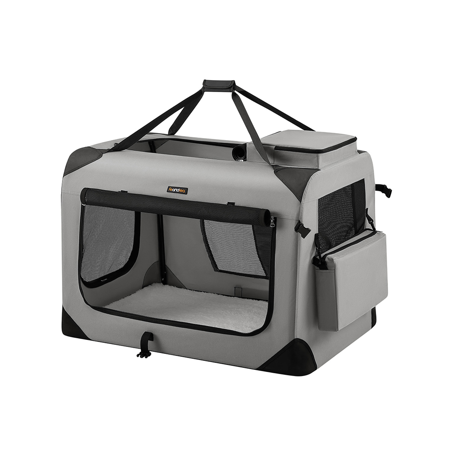 - Medžiaga: Tvirtas metalinis rėmas, 600D Oxford audinys su PVC danga, užtikrinantis ilgaamžiškumą ir atsparumą dėvėjimuisi. Viduje esanti vilna suteikia papildomą komfortą jūsų augintiniui.