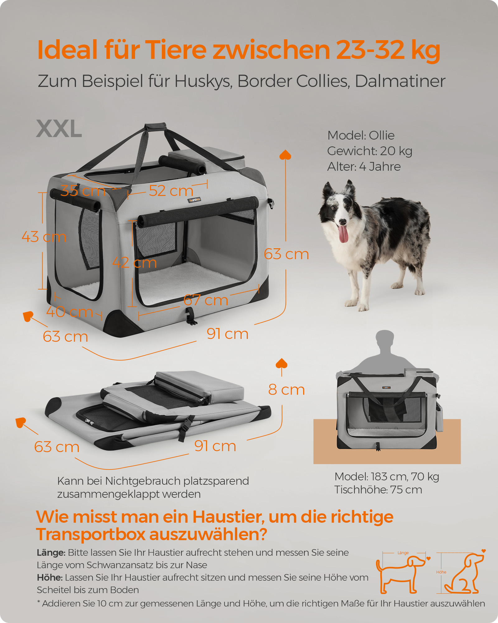- Dydis: XXL, matmenys 91 x 63 x 63 cm (ilgis x plotis x aukštis), suteikiantis pakankamai erdvės jūsų šuniui.