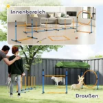 - ✔ Medžiaginė sienelė šuolių metu moko šunis kliūčių komplektas