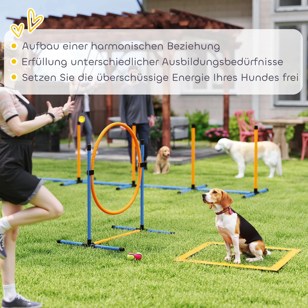 Patobulinkite žaidimą ir fizinę formą naudodami šunims skirtą „PawHut Agility“ rinkinį! Su 7 dalimis, tokiomis kaip šokinėjimo kliūtis, padangos ir slalomo lazdos, šis šunų judrumo rinkinys žaismingai pagerina jūsų šuns judrumą ir sustiprina jūsų santykius. Speciali šunų kurso medžiaginė sienelė meta iššūkį drąsiems šuoliams, o dėl patogaus nešiojimo krepšio dresūros komplekto gabenimas yra vaikiškas žaidimas.