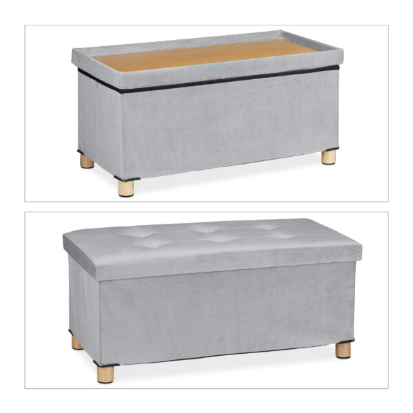 • Funkcionalumas: Suoliukas su integruota daiktadėže po nuimamu dangteliu, suteikiantis papildomą vietą daiktams laikyti.