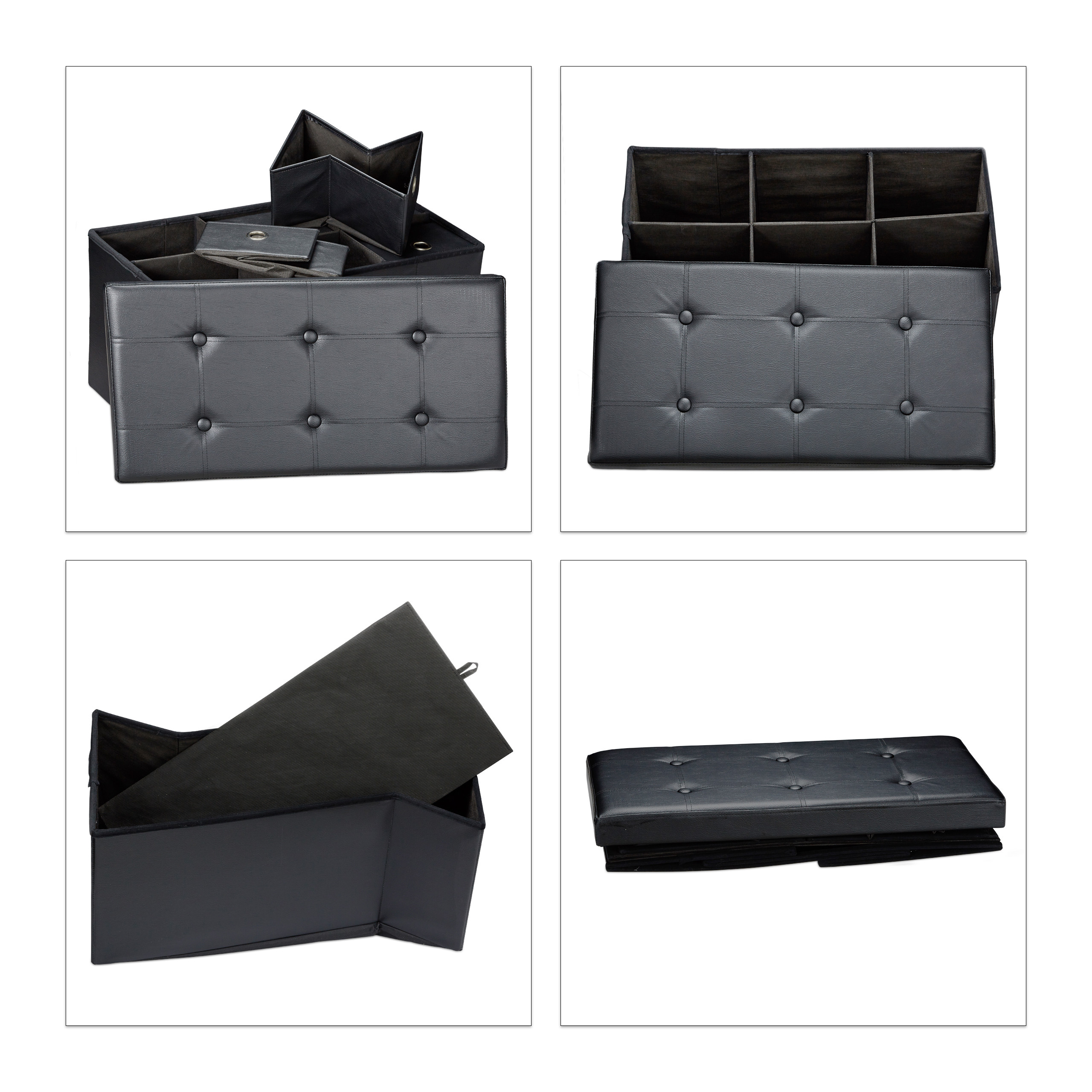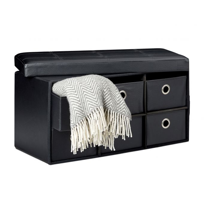 Suolas su sandėliavimo vieta 38x76x38cm, juodos spalvos