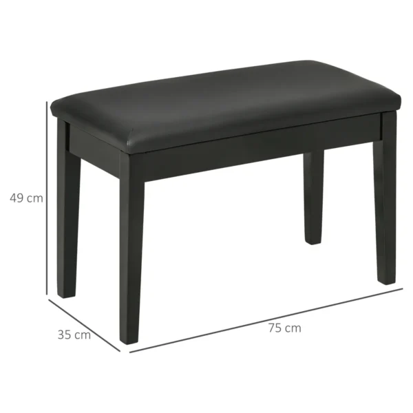 Geras suolas gali labai padėti mokantis groti pianinu. Sėdynė yra aptraukta dirbtine oda ir suteikia klasikinę išvaizdą bei komfortą ilgų klaviatūros seansų metu. Kuo labiau atsipalaiduosite, tuo labiau norėsite treniruotis! Guminė medžio konstrukcija atlaiko iki 150 kg apkrovą ir suteikia tvirtą sėdimąjį paviršių. Pasirinkite HOMCOM fortepijono suolelį ir pakelkite grojimą pianinu į kitą lygį.