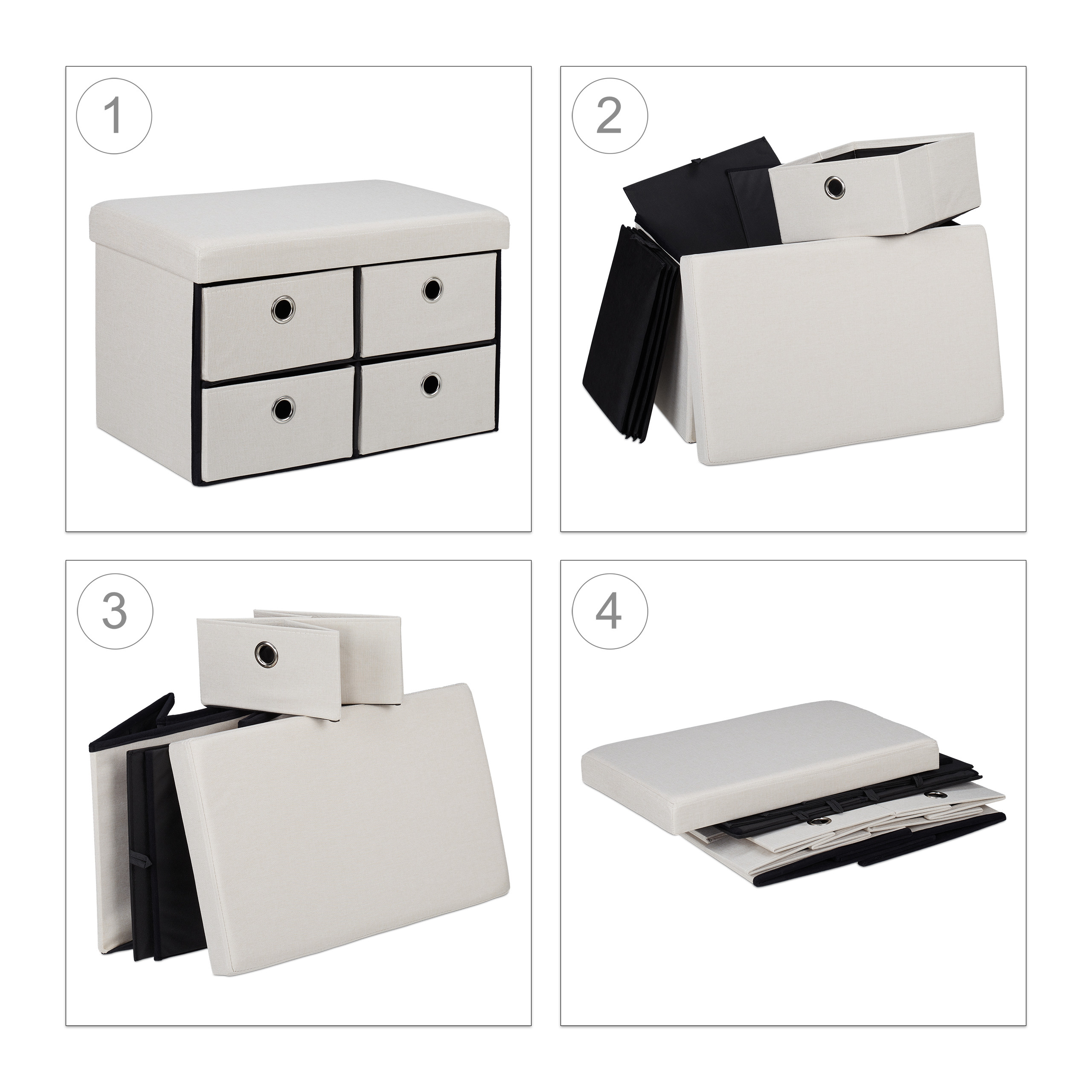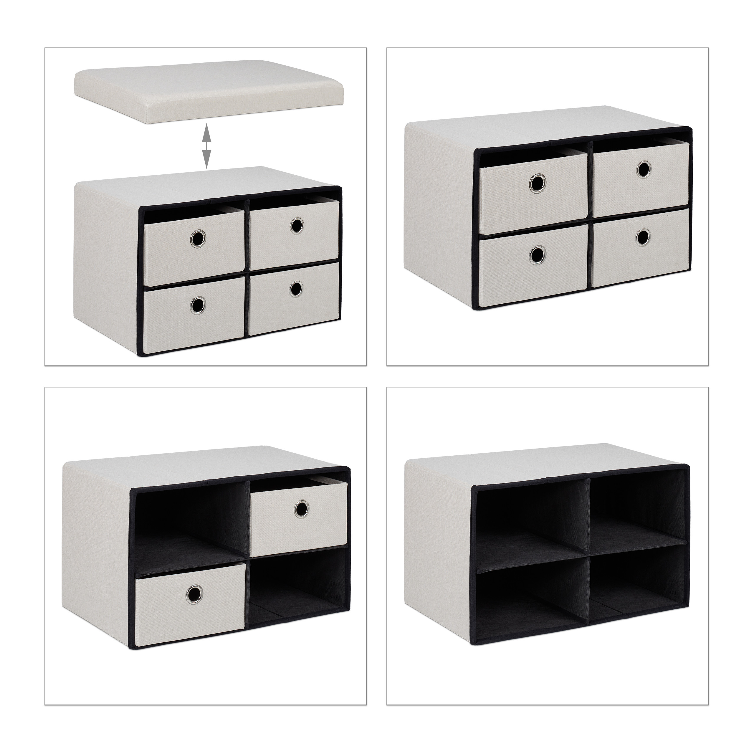 Suoliukas su 4 skyriais 39x60x38cm, Kreminės Spalvos