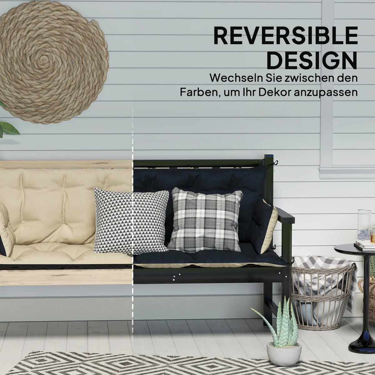 Optimizuokite savo lauko erdvę naudodami Outsunny pagalvėlę sodo baldams. Atverčiamas dizainas su kontrastingomis lauko sėdynės pagalvėlės spalvomis leidžia įrengti lanksčius spalvotus baldus terasoje, sode ar balkone. Pagamintos iš 230 g/m² poliesterio, šios sodo suoliukų pagalvėlės išlaiko stabilumo matmenis dėl kuokštavimo technologijos. Jie yra atsparūs purslams ir lengvai valomi, puikiai tinka trivietėms, pavyzdžiui, sofoms ir verandos sūpynėms, ir užtikrina ilgalaikį, stilingą komfortą.