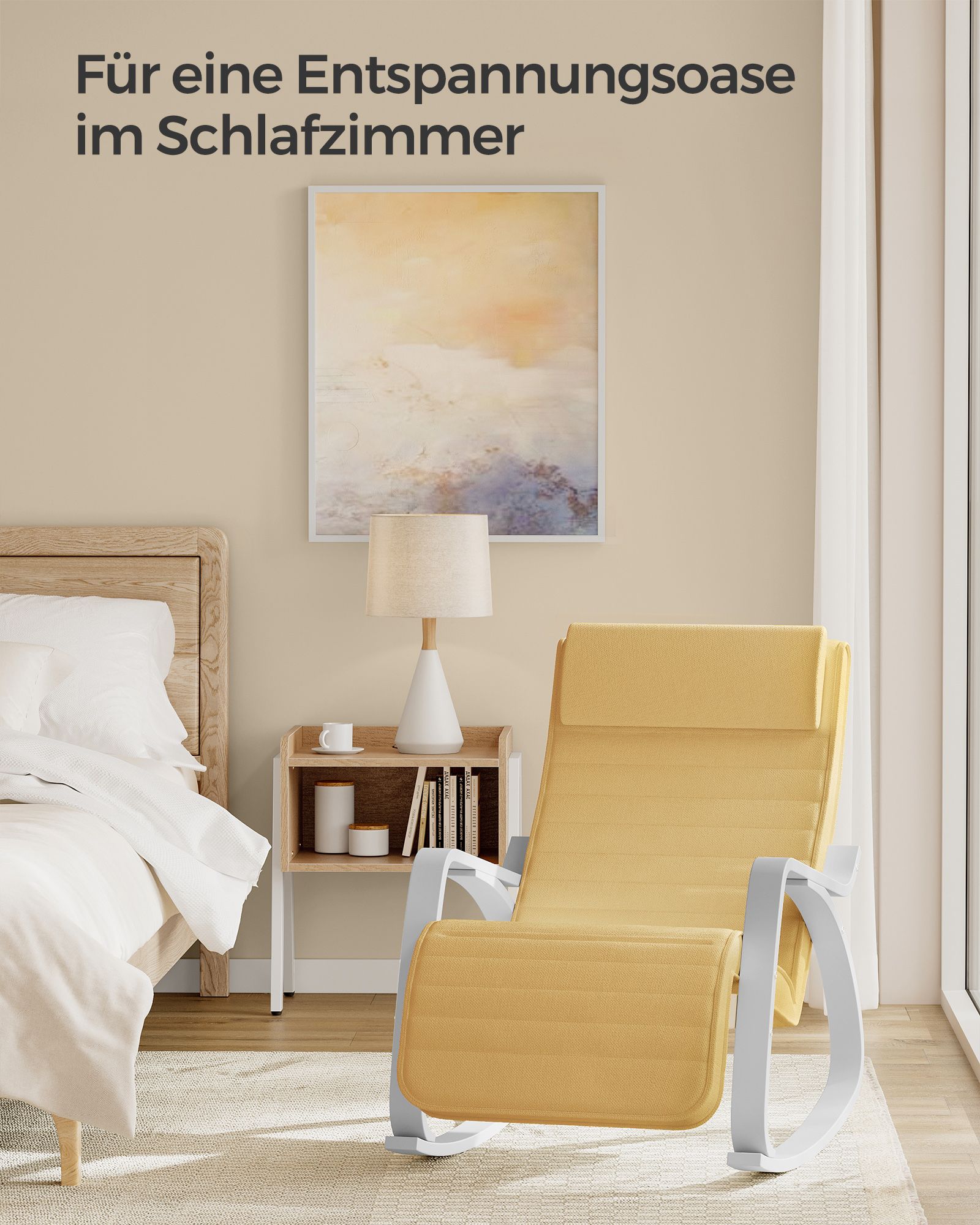 Supama kėdė 121,5x67x84cm, baltos/geltonos spalvos