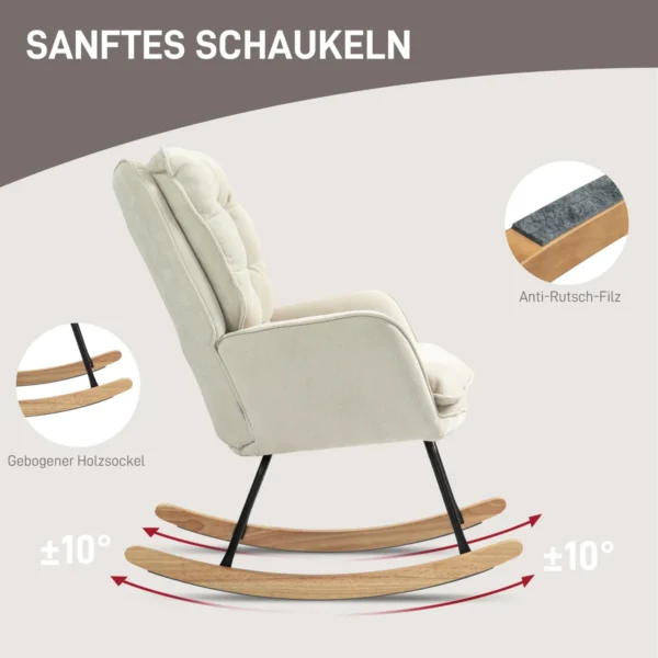 - ✔ Neslystanti veltinio juostelė ir medinis supamosios kėdės rėmas užtikrina saugų, švelnų supamąjį judesį