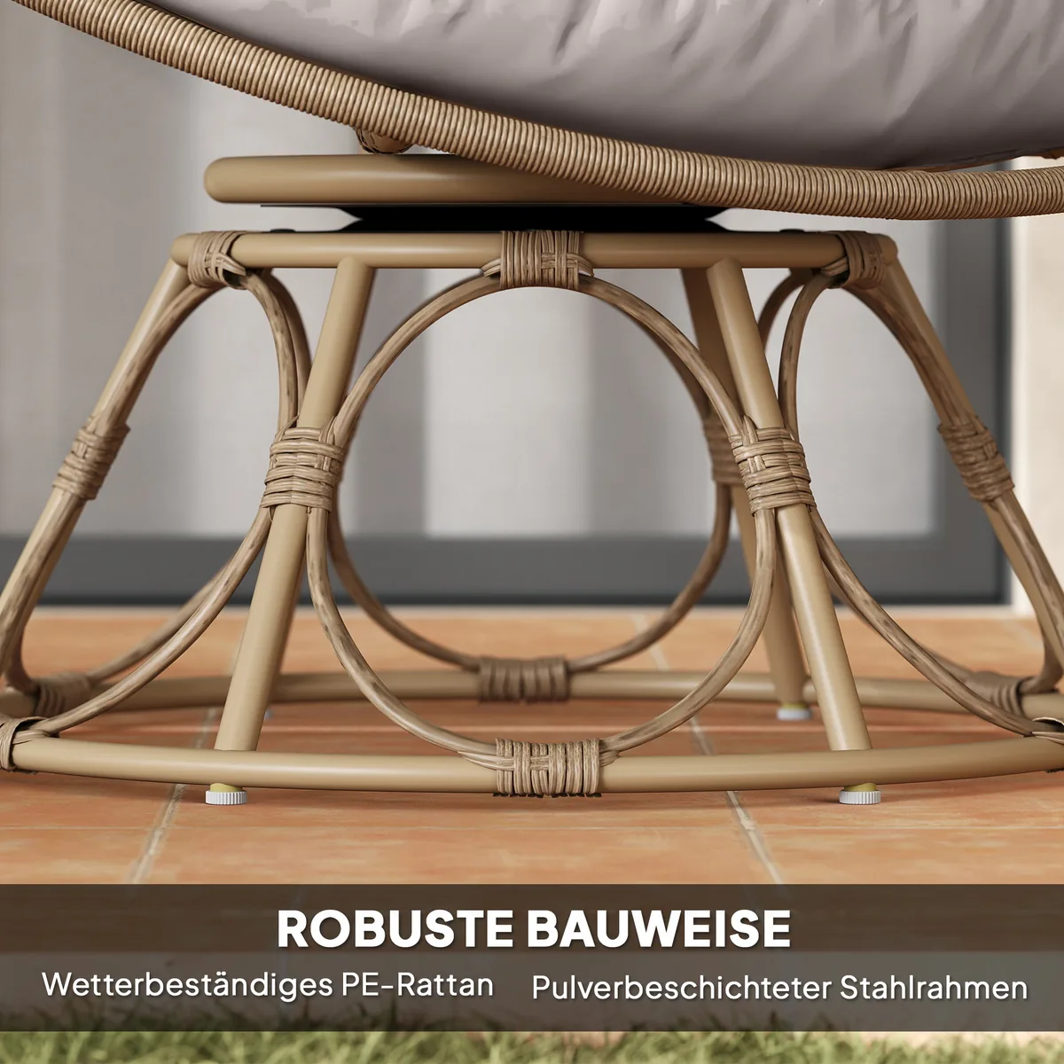 - ✔ Orui atsparus rotangas ir plieninis rėmas, užtikrinantis ilgaamžiškumą