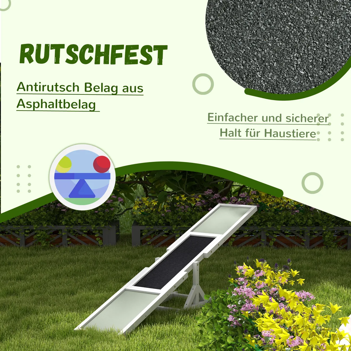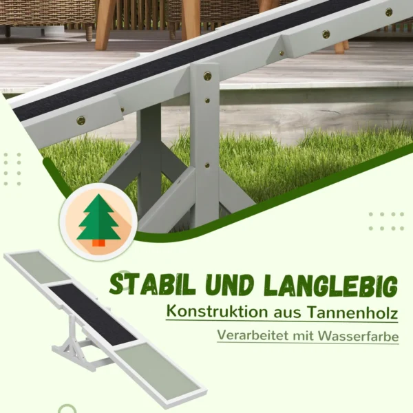 PawHut šuo, skirtas judrumui, suteikia jūsų šuniui judėjimo būdą. Mūsų judrumo šunų svirtis turi neslidų paviršių, todėl jūsų šuo geriau sukimba balansuojant. Mūsų judrumo įranga gali skatinti pasitikėjimą, treniruotę ir paklusnumą bei padėti išlaikyti šuns formą. Mūsų rokeris sukurtas šunims iki 30 kg, todėl tinka daugeliui šunų veislių.