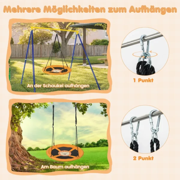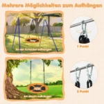 - Sūpynes galima kabinti su 1 arba 2 taškais – 360° sukimasis arba pirmyn-atgal judesys.