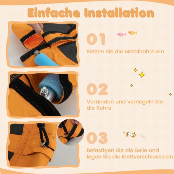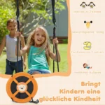 Sūpynės vaikams 102x173cm, oranžinės ir juodos spalvos, skirtos saugiam ir patogiam lauko žaidimui. Didelė diskinių sūpynių sėdynė talpina iki 2 vaikų, o reguliuojamos virvės leidžia pritaikyti sūpynes pagal žaidėjų poreikius. Tvirtos medžiagos ir lengvas surinkimas užtikrina ilgaamžiškumą ir patogumą naudoti.