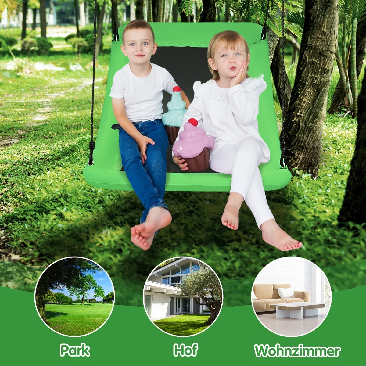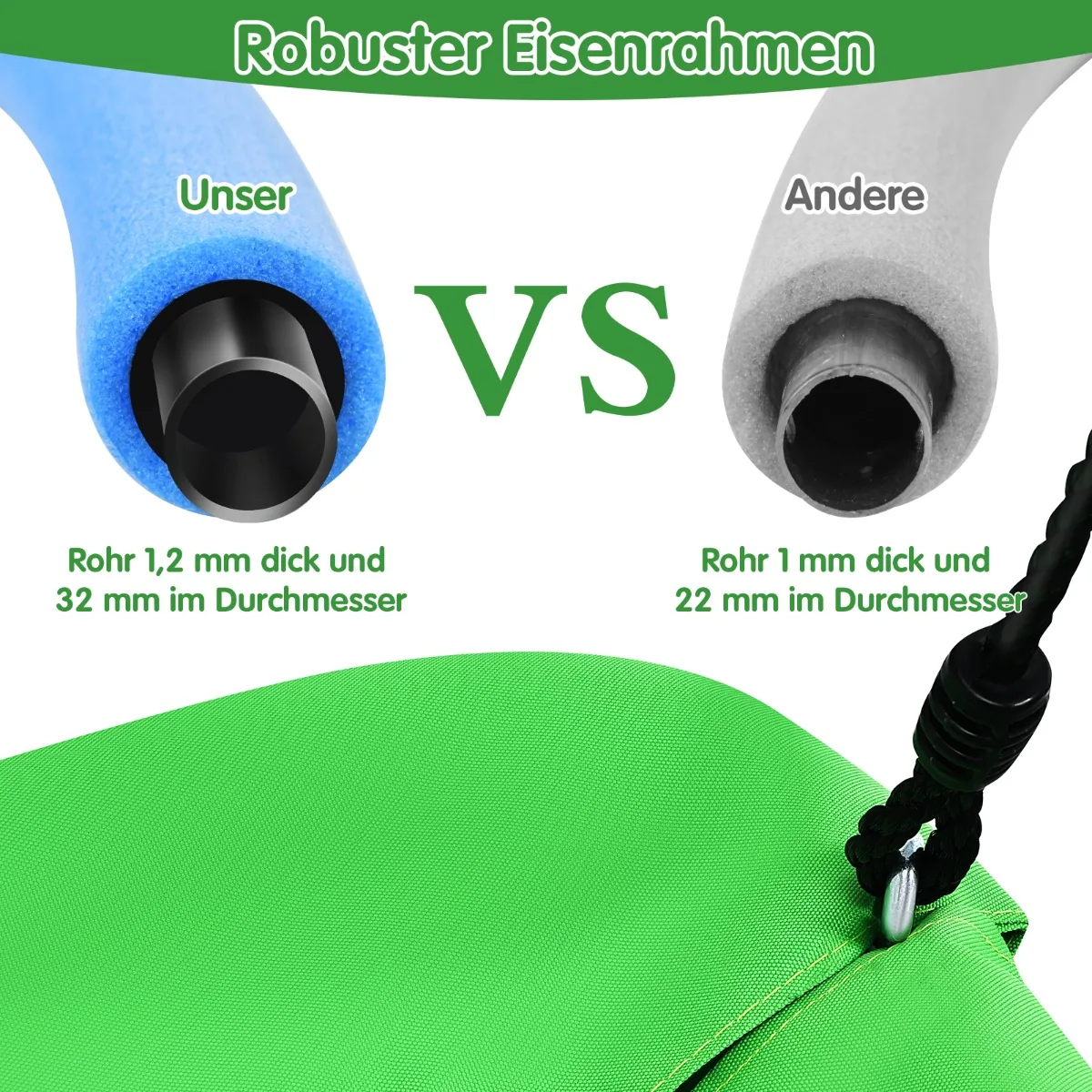 Sūpynės vaikams 83x155x180cm, žalios/juodos spalvos – patvari ir funkcionali lauko pramoga vaikams. Pagamintos iš Oksfordo audinio, PP ir plieno, jos užtikrina saugumą, stabilumą bei ilgalaikį naudojimą. Reguliuojamas virvės ilgis leidžia pritaikyti sūpynes skirtingam aukščiui, dėl kompaktiško dydžio jas lengva pritvirtinti ir perkelti.