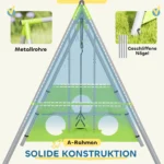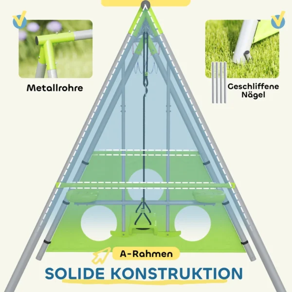 ✔ Vaikiškų sodo sūpynių A formos rėmas ir šlifuoti vinys padidina stabilumą ir saugumą