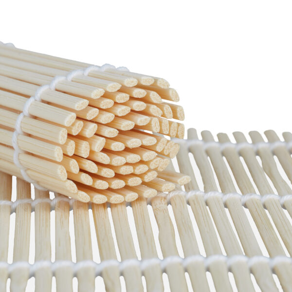 Naudodami kočiojimo kilimėlį, uždenkite jį maistine plėvele, kad ryžiai neliptų tarp pagaliukų. Tai padės išlaikyti jūsų kilimėlį švarų ir palengvins sušių gaminimo procesą.