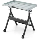 Suvirinimo stalas 78x55x95cm, juodos ir sidabrinės spalvos, skirtas efektyviam ir patogiam suvirinimo darbui. Tvirtas metalinis rėmas ir cinkuotas stalviršis užtikrina stabilumą ir ilgaamžiškumą, o reguliuojamas aukštis bei kampas padeda pritaikyti stalą pagal darbo poreikius.