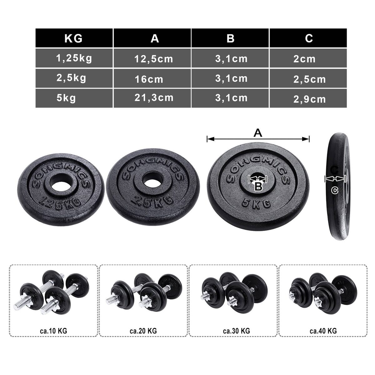 SONGMICS siūlo aukštos kokybės fitneso priedus tiems, kurie siekia idealios kūno formos. Mūsų svarmenų rinkinys 2×40 kg, juodos spalvos, sukurtas taip, kad suteiktų jums geriausią treniruočių patirtį be laiko ir erdvės apribojimų. Jis leidžia individualizuoti treniruotę, nes skirtingi diskai leidžia svorius reguliuoti pagal treniruočių intensyvumą juos tiesiog derinant.