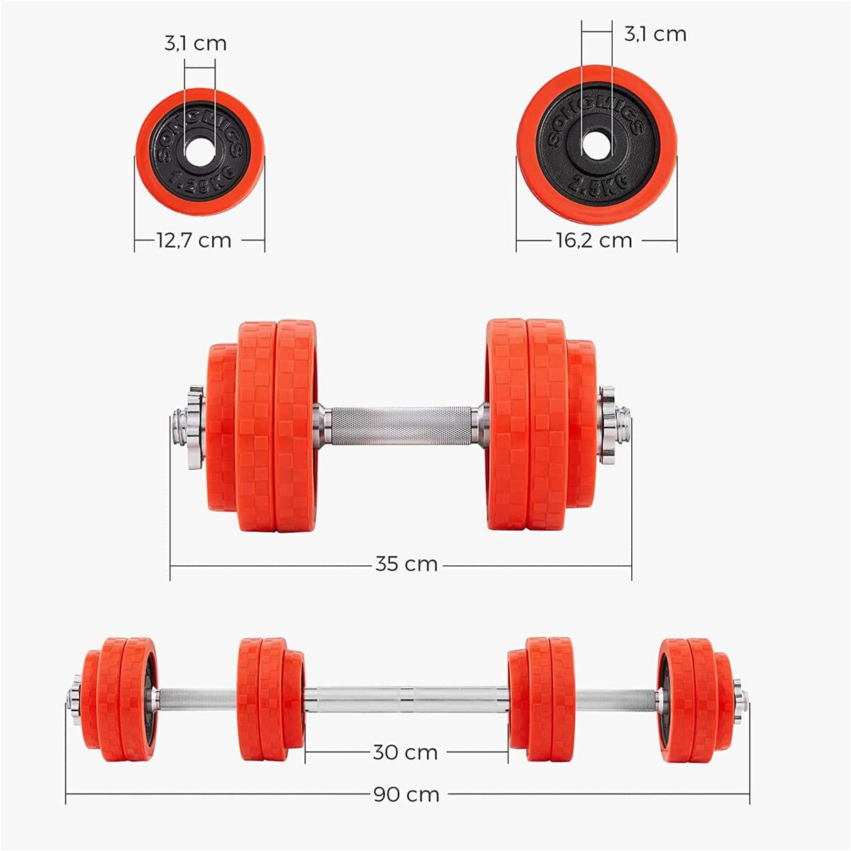 SONGMICS siūlo aukštos kokybės fitneso priedus tiems, kurie siekia idealios kūno formos. Mūsų svarmenų rinkinys buvo sukurtas siekiant pasiūlyti jums optimalią treniruočių patirtį be laiko ir erdvės apribojimų. Jis leidžia jums pritaikyti savo treniruotę pagal savo poreikius: skirtingi diskai leidžia pritaikyti svorius pagal jūsų treniruočių intensyvumą, juos tiesiog derinant. Tai leidžia sutaupyti pinigų ir vietos papildomiems svoriams.