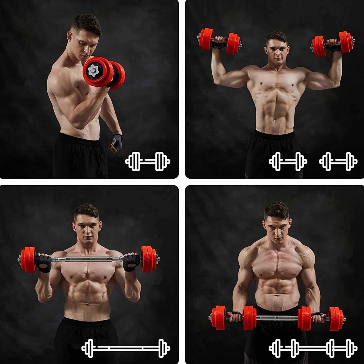 Šį svarmenų rinkinį galite paversti štanga: naudodami specialią jungtį, įtrauktą į pristatymą, štangą turėsite iš karto. Tai suteikia dar daugiau galimybių ugdyti skirtingų kūno dalių raumenis ir pasiekti geresnių treniruočių rezultatų.