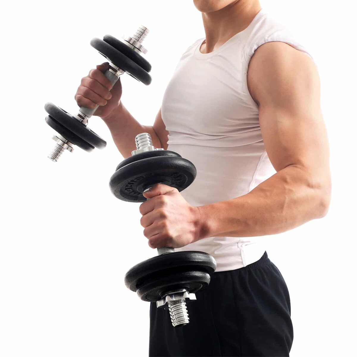 Šis rinkinys leidžia suasmeninti savo treniruočių rutiną: skirtingi diskai leidžia lengvai reguliuoti svorius naudojant paprastus derinius, priklausomai nuo treniruotės intensyvumo. Tai padeda atlaisvinti vietos ir taupyti papildomam svoriui.