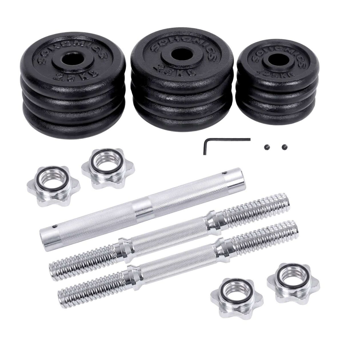 SONGMICS visada siūlo aukštos kokybės fitneso priedus tiems, kurie siekia savo idealios kūno formos. Mūsų visiškai naujas svarmenų rinkinys SYL30LBK, juodos spalvos, sukurtas taip, kad pasiūlytų jums optimalią treniruočių patirtį be laiko ir erdvės apribojimų.