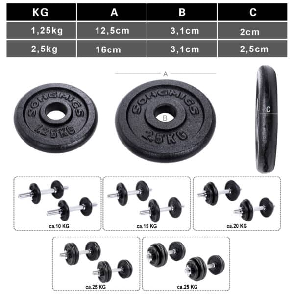 SONGMICS siūlo aukštos kokybės fitneso priedus tiems, kurie siekia idealios kūno formos. Mūsų svarmenų rinkinys SYL30T 2 x 15 kg buvo sukurtas siekiant pasiūlyti jums optimalią treniruočių patirtį be laiko ir erdvės apribojimų. Skirtingi diskai leidžia svorius reguliuoti pagal treniruočių intensyvumą, juos tiesiog derinant.