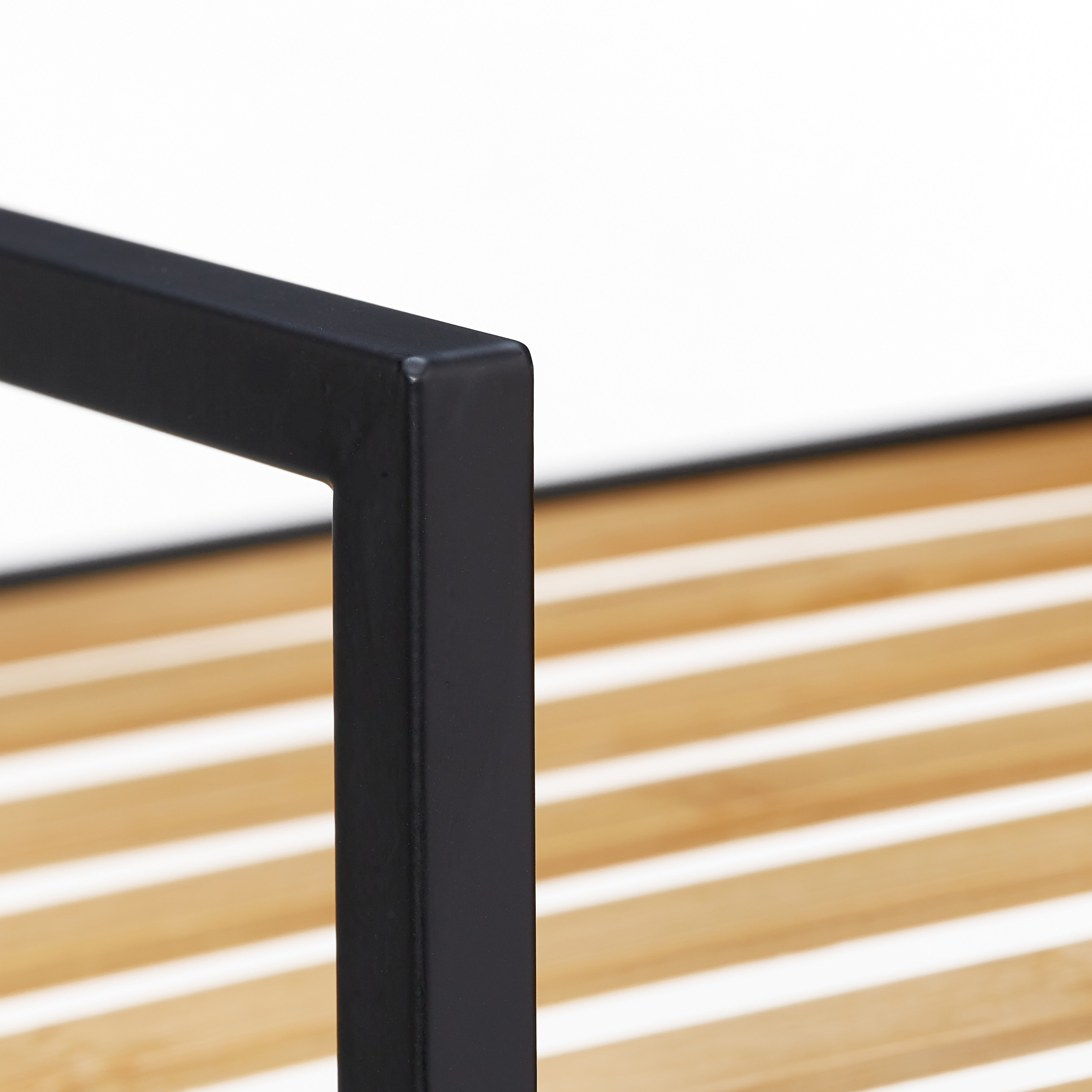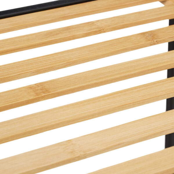 - Medžiagų Derinys: Harmoninga natūralių grūdų bambuko ir juodos geležies kombinacija.