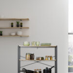 - Pramoninis Dizainas: Šviesiai rudos ir juodos spalvos derinys suteikia lentynai išskirtinį pramoninį stilių, kuris lengvai dera su bet kokiu interjero stiliumi.