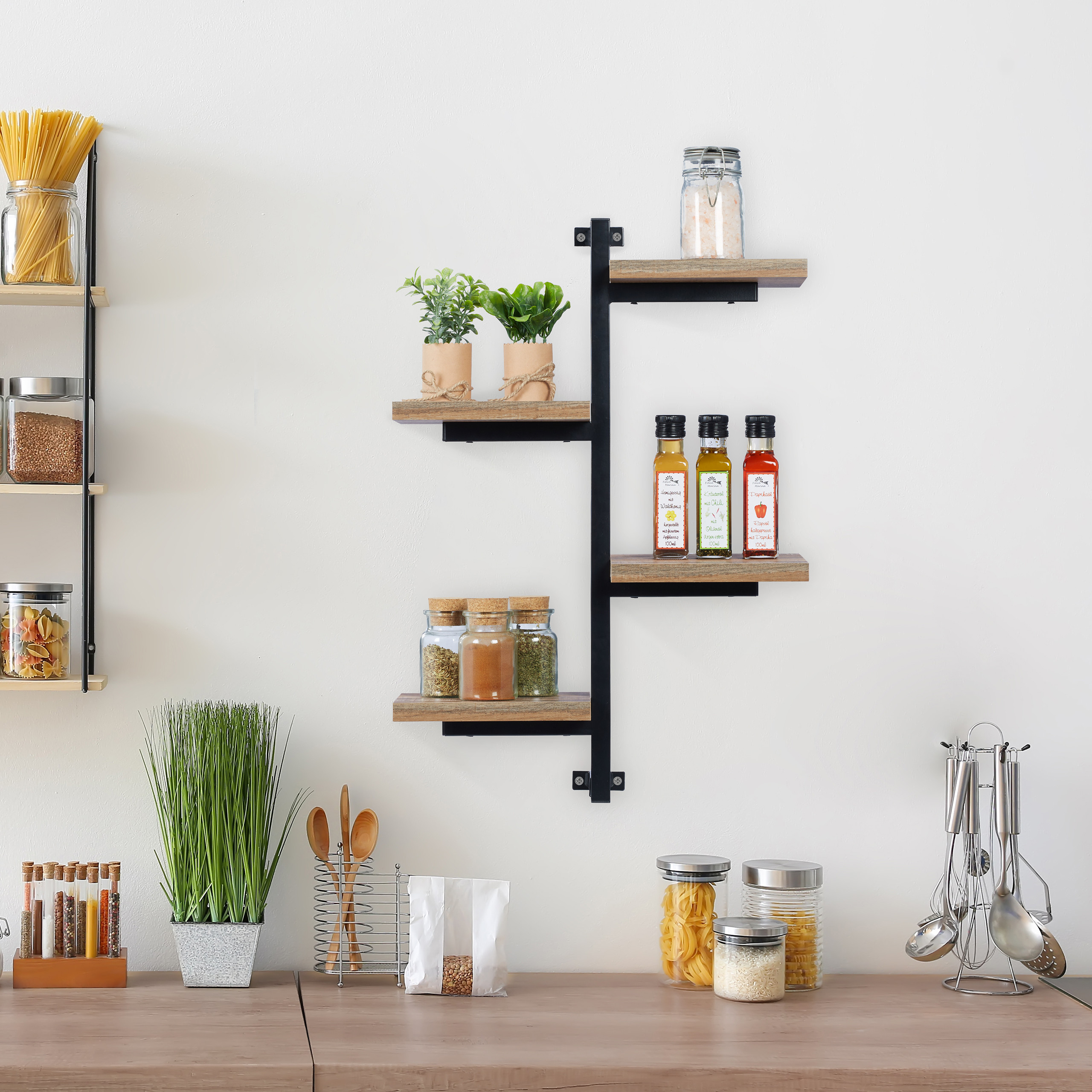 Įneškite pramoninio dizaino eleganciją į savo namus su šia išskirtine sienine lentyna. Ši lentyna ne tik papuoš jūsų svetainės ar miegamojo sienas, bet ir suteiks joms naują gyvybę. Jos universalumas leidžia ją pritaikyti įvairiose erdvėse, nuo prieškambario iki virtuvės.