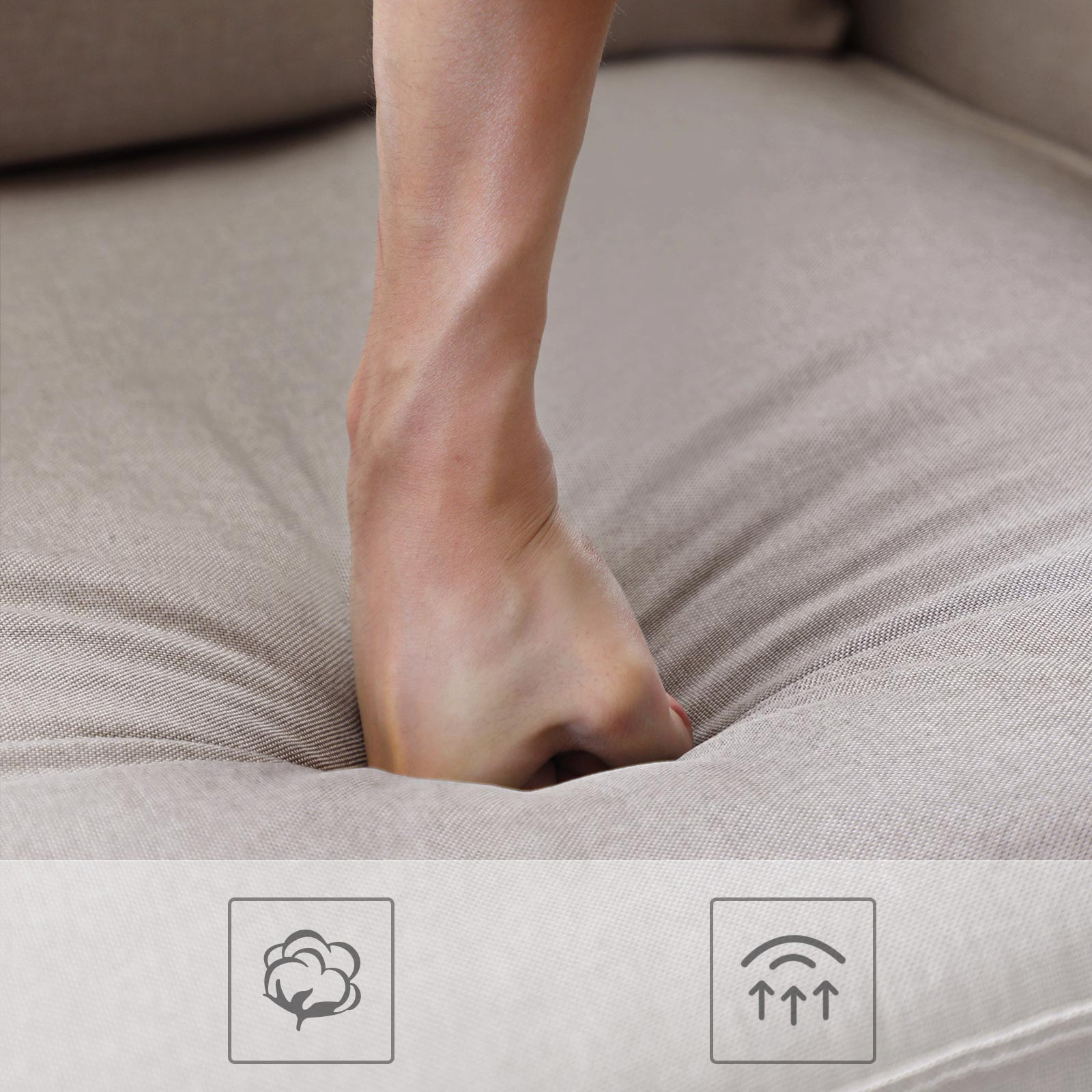 - Didelės pagalvėlės yra prijungtos prie sofos naudojant Velcro, todėl visada lieka savo vietoje.